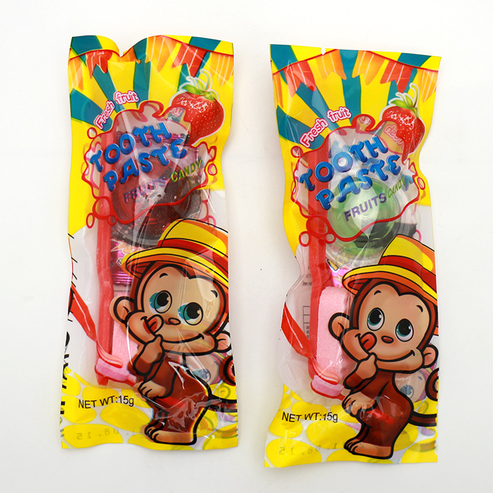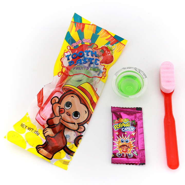 1. ลูกอมกดแปรงสีฟัน 3 อิน 1 พร้อมน้ำเชื่อมผลไม้และลูกอมป๊อปปิ้ง ลูกอมของเล่นแปรงสีฟัน