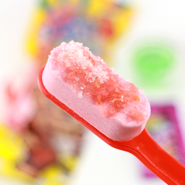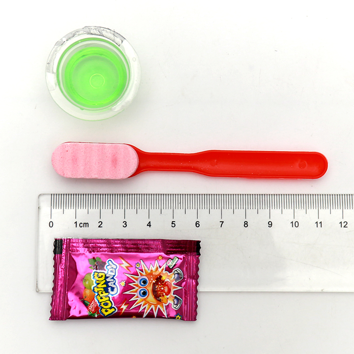 ลูกอมกดแปรงสีฟัน 3 in 1 พร้อมน้ำเชื่อมผลไม้และลูกอมป๊อปปิ้ง ลูกอมของเล่นแปรงสีฟัน