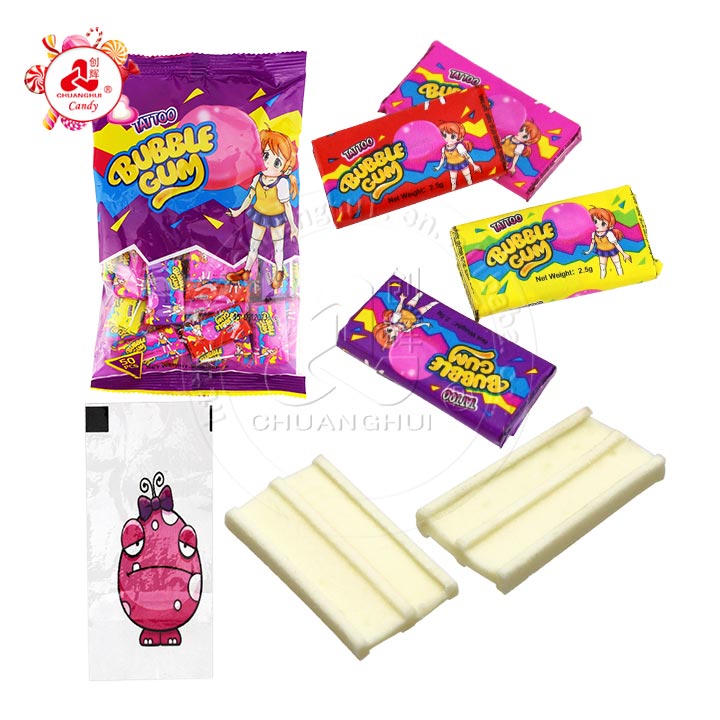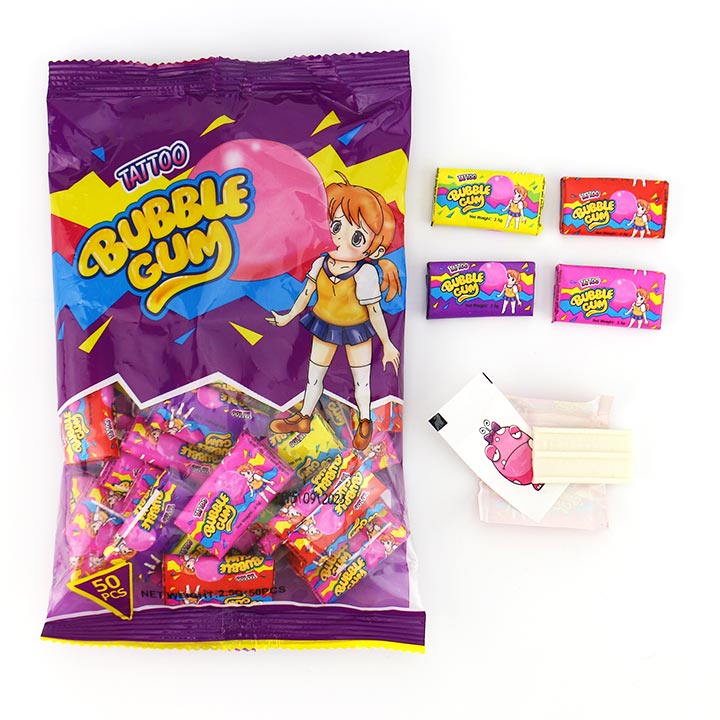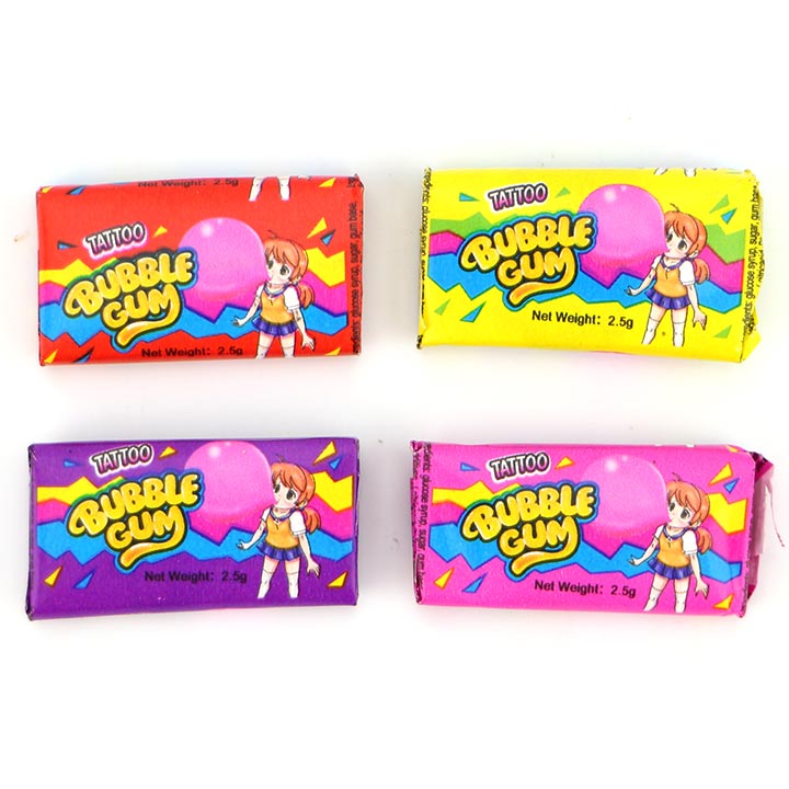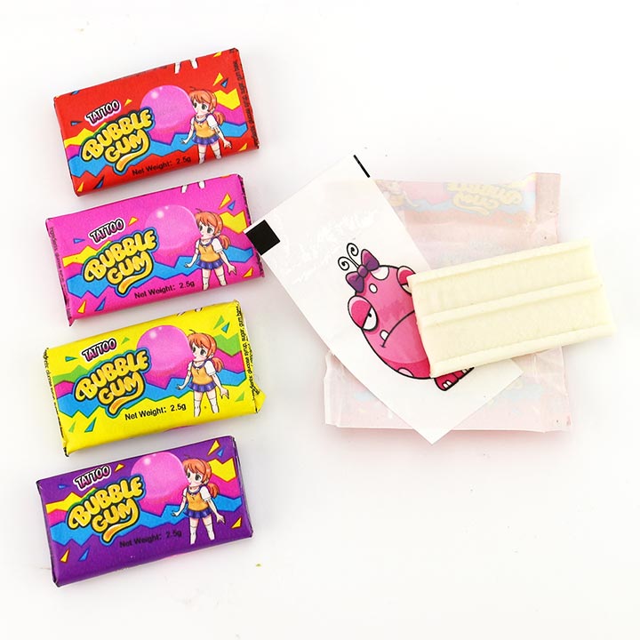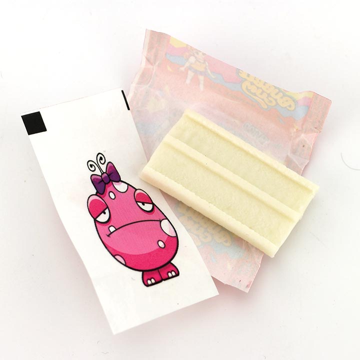 • หมากฝรั่งรสหวานกลิ่นผลไม้ 4 ซม. พร้อมสติ๊กเกอร์รอยสัก