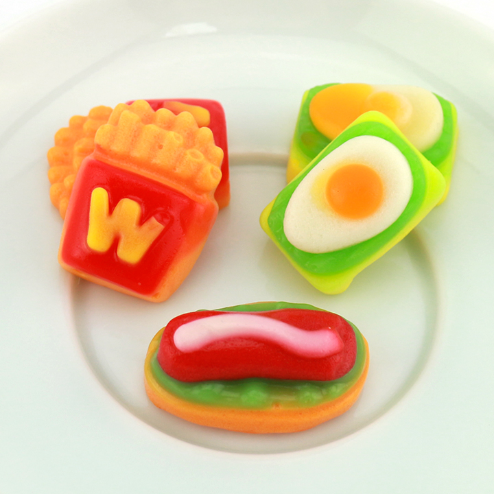 • 5 in 1 ลูกอมเคี้ยวหนึบรูปทรงผลไม้รสผลไม้