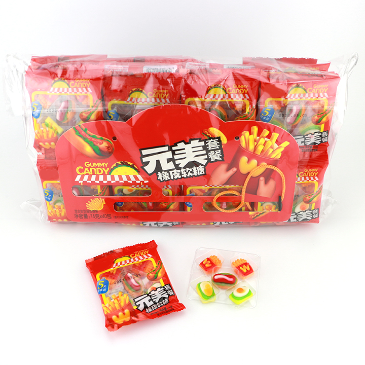 1. ลูกอมเคี้ยวหนึบรสผลไม้ 5 in 1 รสผลไม้ 2. ชิ้นละ 14 กรัม , ถุงละ 40 ชิ้น , 10 ถุงต่อ ctn 3. รส: ผลไม้ 4. ปริมาณการสั่งซื้อขั้นต่ำ: 800 ctns