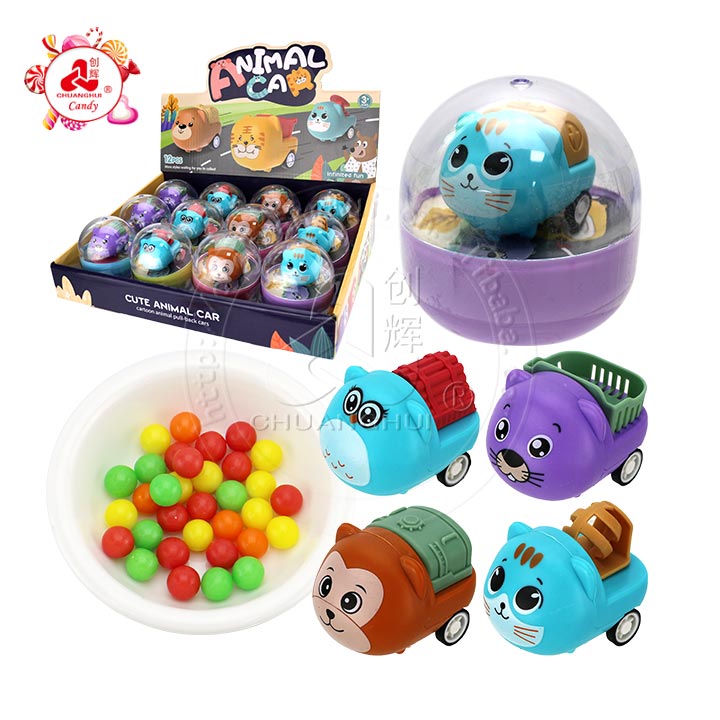 รถของเล่นดึงกลับการ์ตูน รถไข่เซอร์ไพรส์ ลูกอมของเล่น