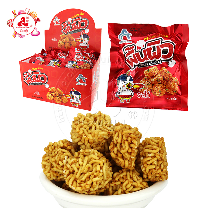 รสไก่ ลูกชิ้น ราเม็ง บะหมี่กึ่งสำเร็จรูปกรอบ ลูกชิ้น
