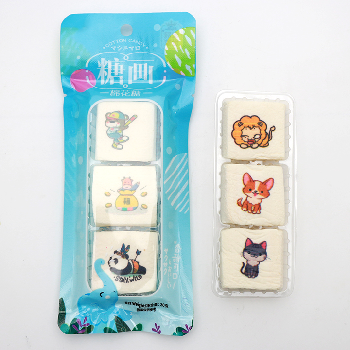 1. เม็ดสีที่กินได้ ภาพเหมือน ขนมหวาน มาร์ชเมลโล่ รูปการ์ตูน ขนมหวาน ลูกอม 2. 20กรัมต่อถุง30ถุงต่อกล่อง8กล่อง/กล่อง; 3. รส: ฟรุ๊ตตี้ 4. ปริมาณการสั่งซื้อขั้นต่ำ: 500 ctns