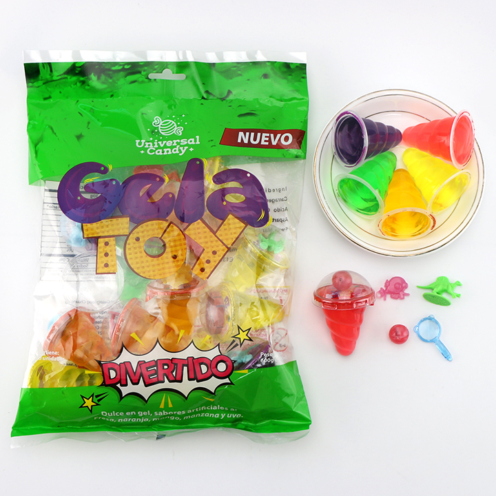 ลูกอมถ้วยฮาลาลพร้อมของเล่น ไอศกรีม ลูกอมรูปทรงกรวยหวาน ลูกอมเยลลี่ผลไม้