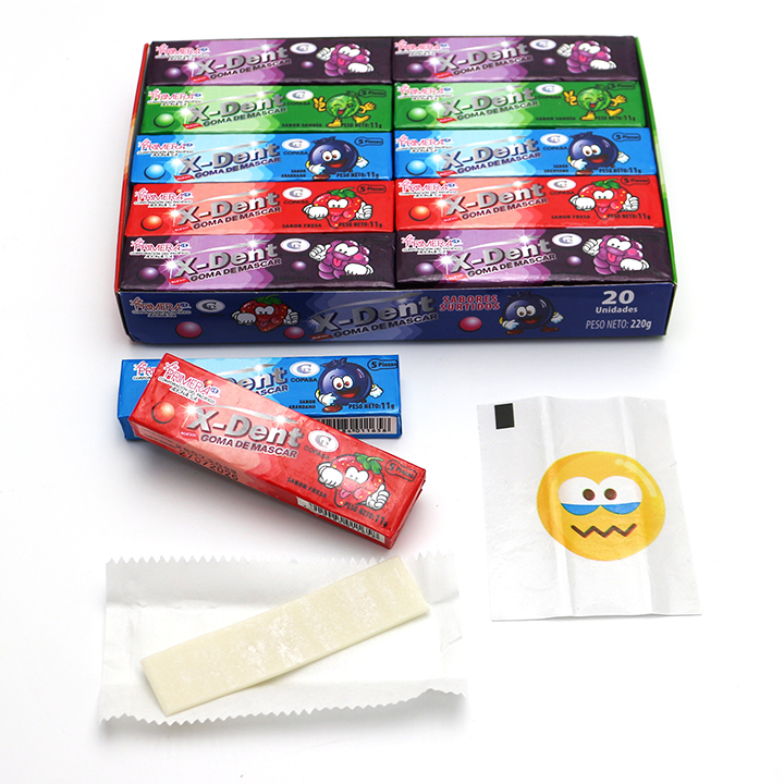 1. 11g * 20pcs * 30boxes / ctn; 2. ขนาดกล่อง:33.5*23.5*16.2 ซม. 3. น้ำหนักรวม: 9.15 กก. ต่อกล่อง 4. จำนวน: 2841 กะรัตต่อ 40'HQ 5. รส:ผลไม้