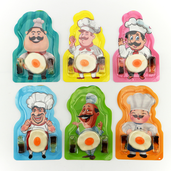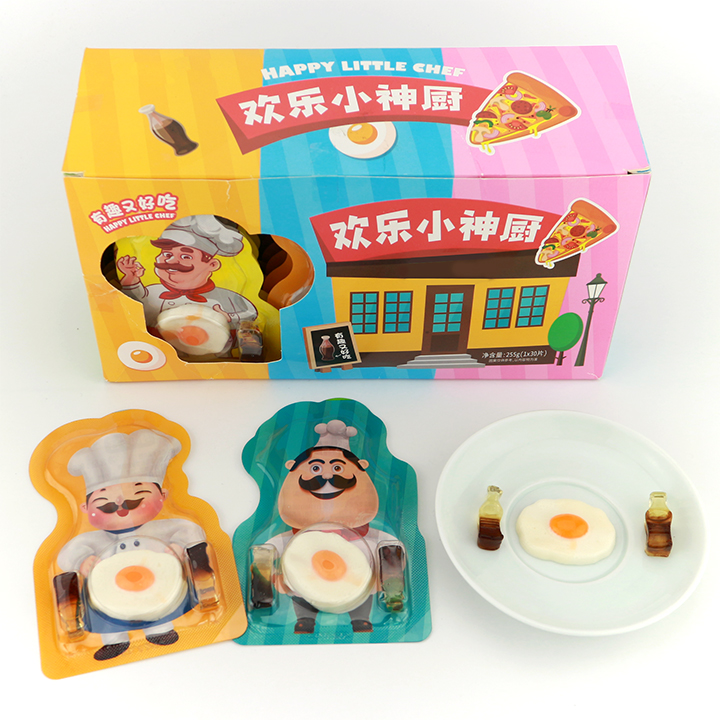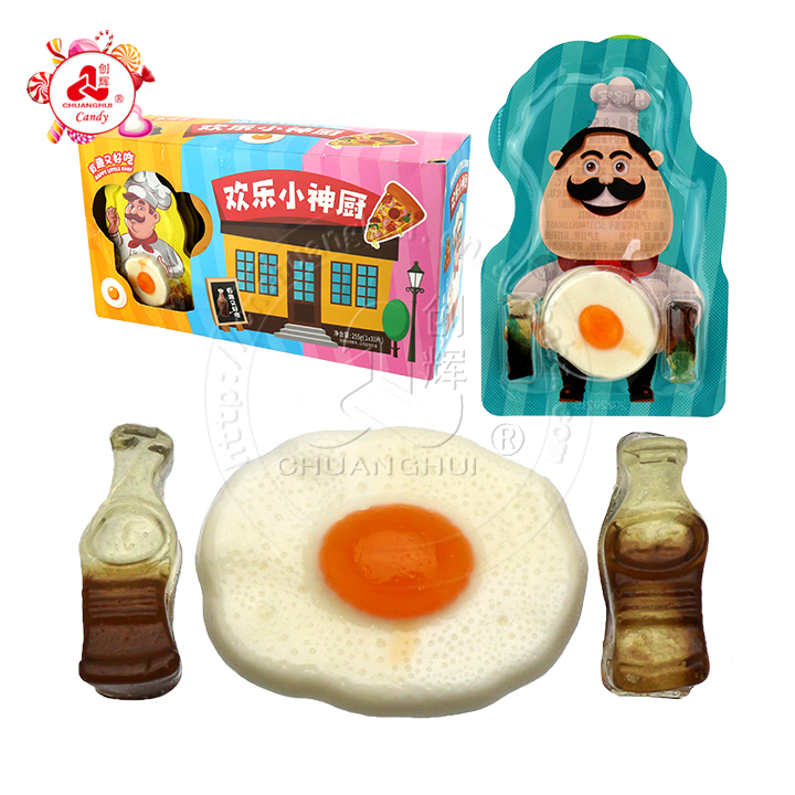 1. ขวดโค้ก Happy Chef และ ลูกอมเคี้ยวหนึบรูปไข่ดาว โคล่า ฮาลาล ซอฟท์ แคนดี้ 2. 8.5g ต่อชิ้น 30 ชิ้นต่อกล่อง 24boxes/ctn; 3. รส: ฟรุ๊ตตี้ 4. ปริมาณการสั่งซื้อขั้นต่ำ: 500 ctns