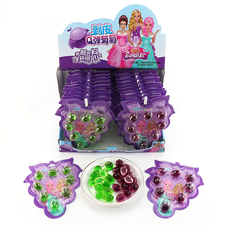 ลูกอมรสองุ่นคุณภาพสูง แยมรสองุ่นสอดไส้ลูกอมเหนียว 1. 36g * 18 ชิ้น * 8 กล่อง / กล่อง; 2. ขนาดกล่อง:53*36*36 ซม. 3. น้ำหนักรวม:8.4 กก. ต่อกล่อง 4. รส: องุ่น