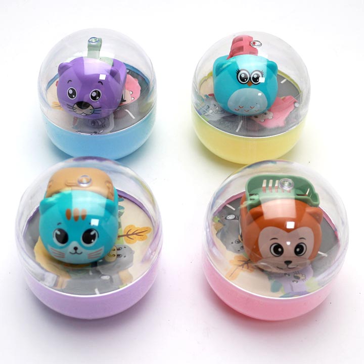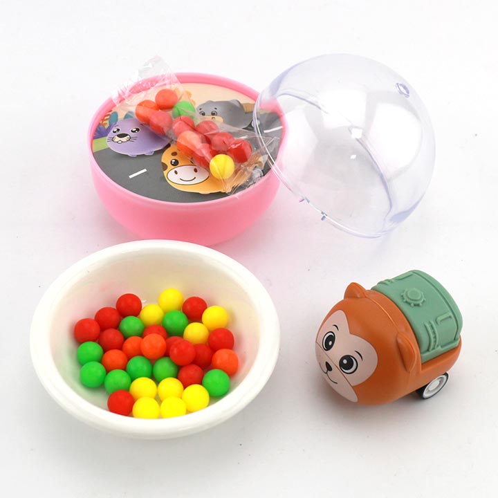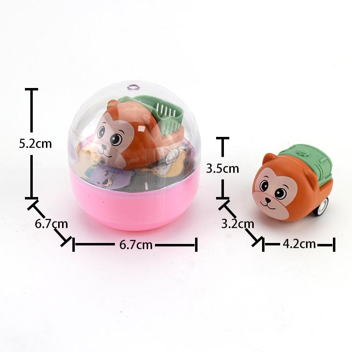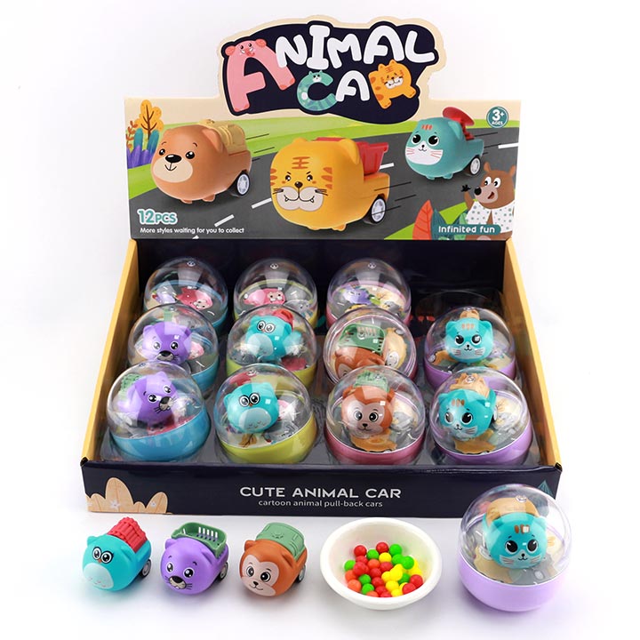 • เด็กพลาสติกแคปซูลไข่ของเล่นการ์ตูนสัตว์ดึงกลับรถแปลกใจของเล่นไข่ลูกอม