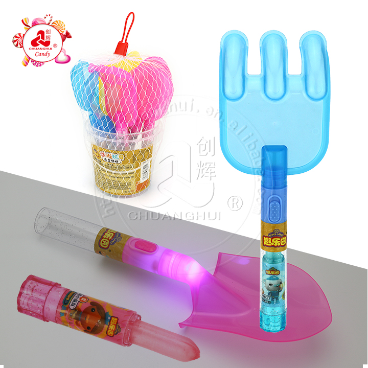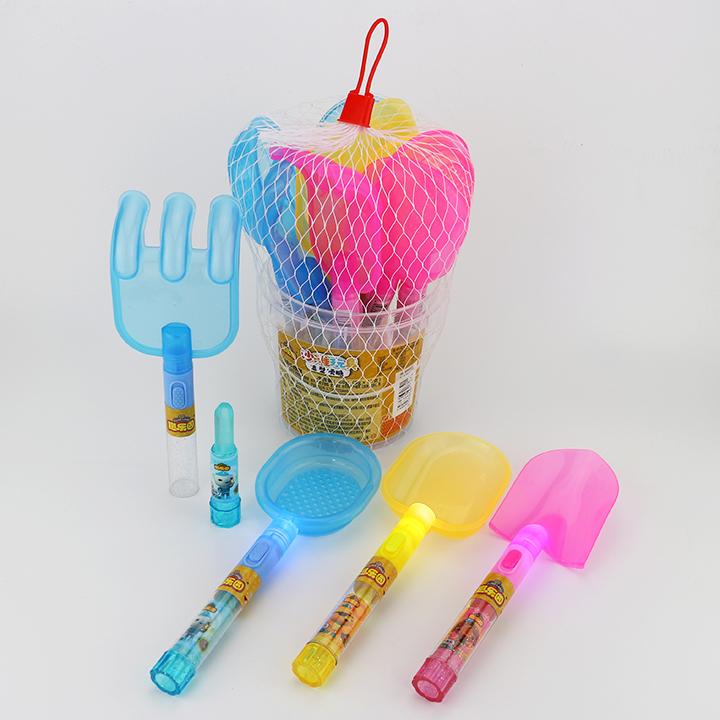 • เครื่องมือชายหาดเรืองแสง นำ ของเล่นพลั่วทรายพร้อมของเล่นลิปสติกอมยิ้มลูกอมแข็ง