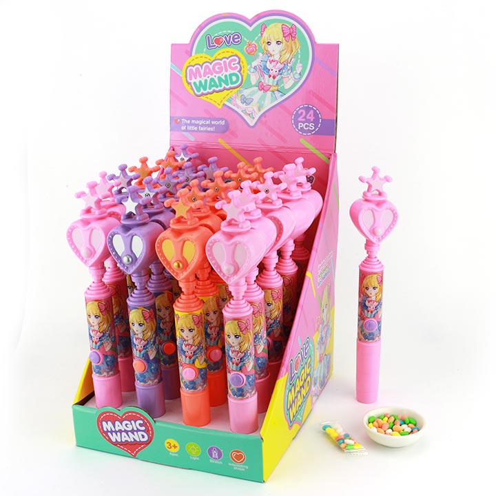 ลูกอมของเล่น Telescopic Fairy Stick พร้อมไฟแฟลชรูปหัวใจที่ด้านบน