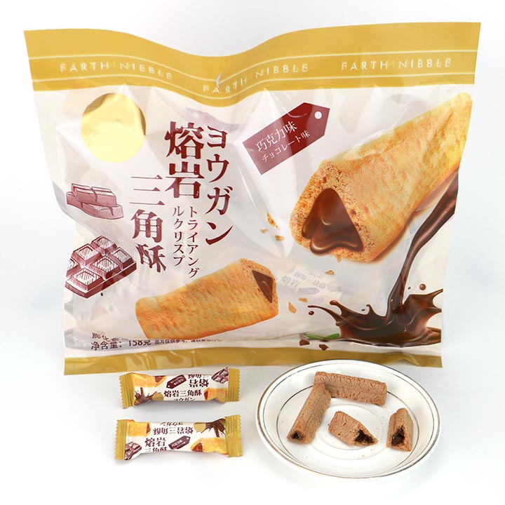 • เวเฟอร์สติ๊กสอดไส้ช็อคโกแลตสามเหลี่ยม บิสกิตสอดไส้แยมนมกรอบ